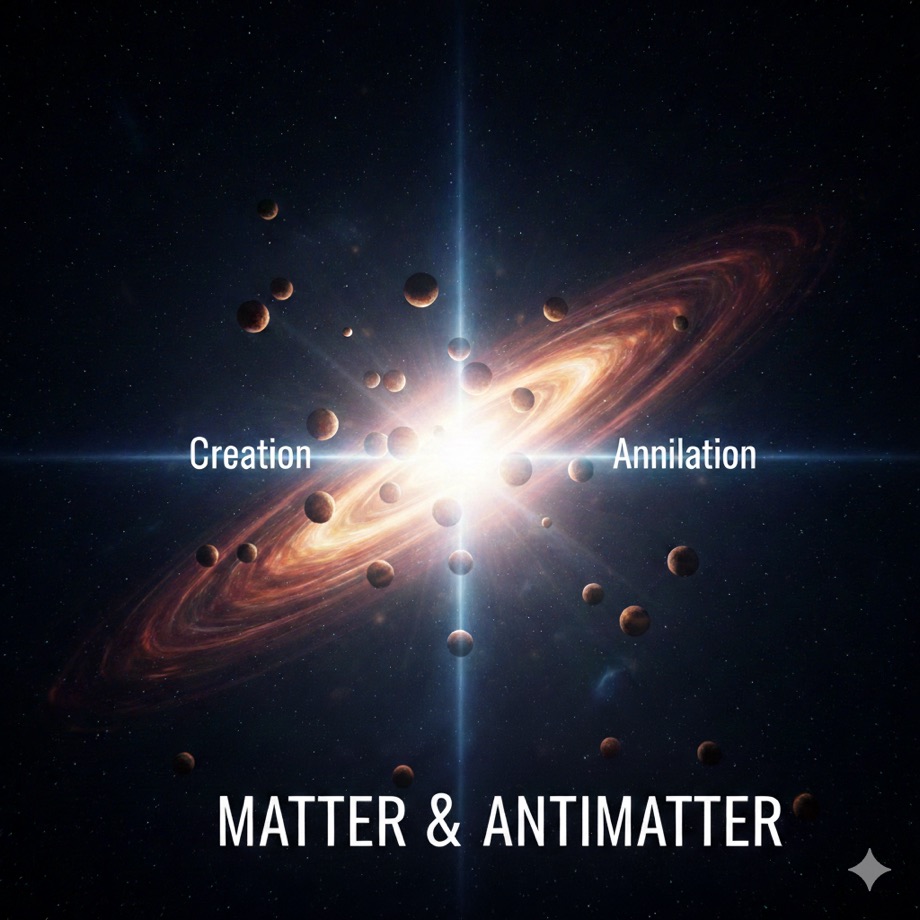 物質と反物質が出会うと、お互いが消えてエネルギー(光など)へと変わります。
